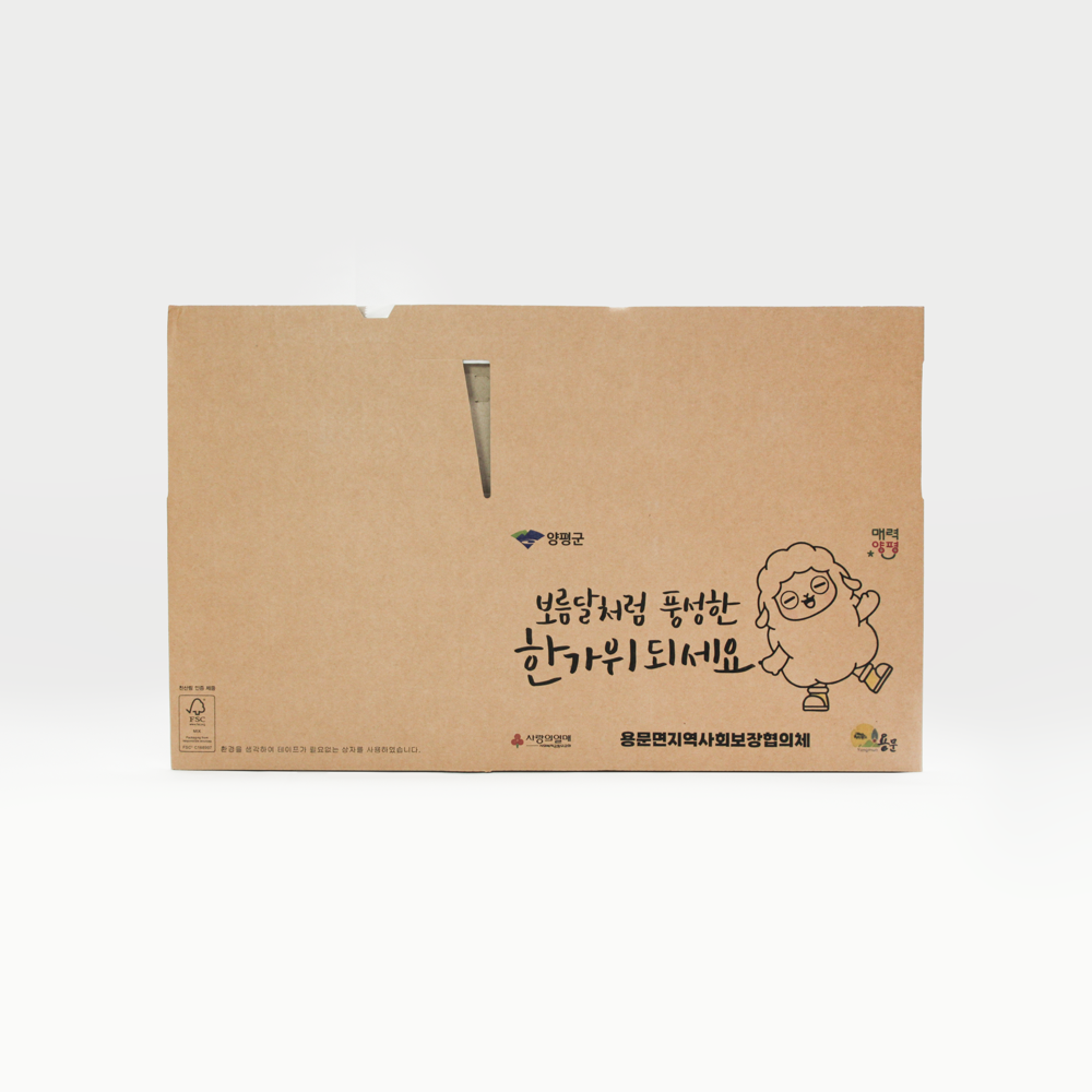 한가위 행복꾸러미를 위해 맞춤형 포장박스를 제작했습니다.