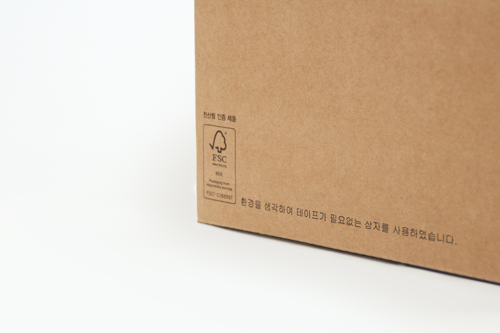 박스에는 FSC 인증 마크와 친환경 문구를 함께 적용해