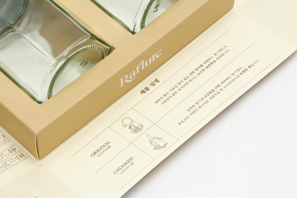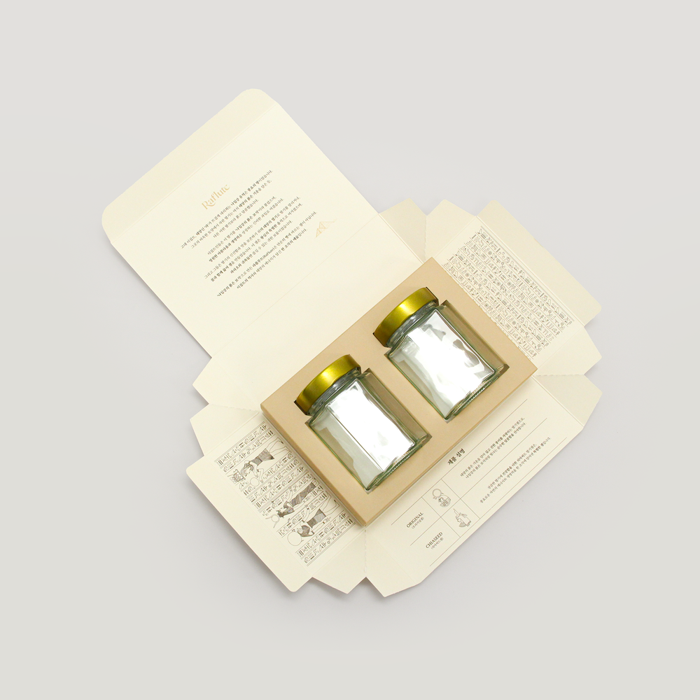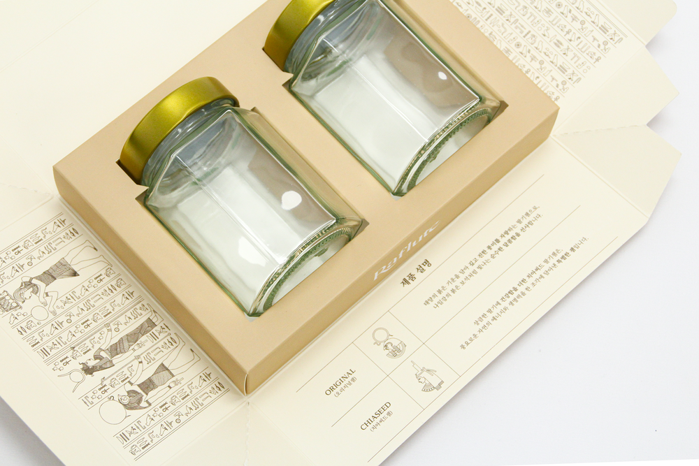 조립형 구조와 양면 인쇄를 활용해 유리 용기 보호와 브랜드 이미지를 동시에 충족시키는 패키지를 제작했습니다.
