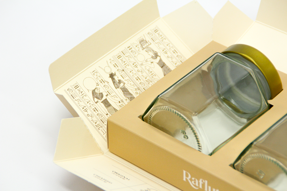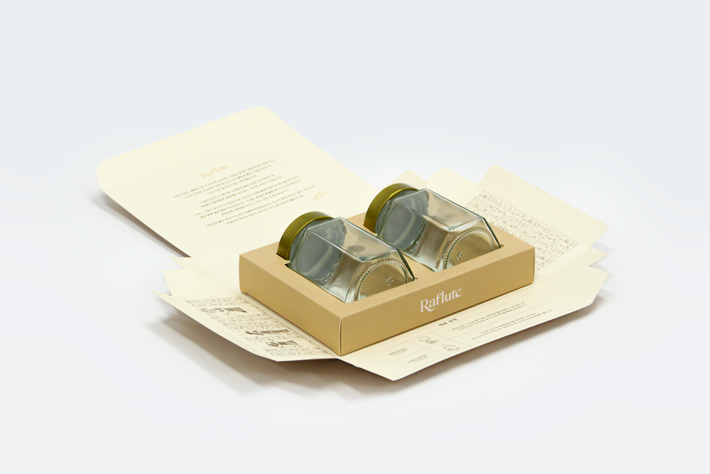 조립형 구조를 활용해 접착 없이 조립되며, 뚜껑을 오픈하면 사방이 열리는 설계로 트레이에 앉힌 잼 두 개가 오픈과 동시에 보입니다.