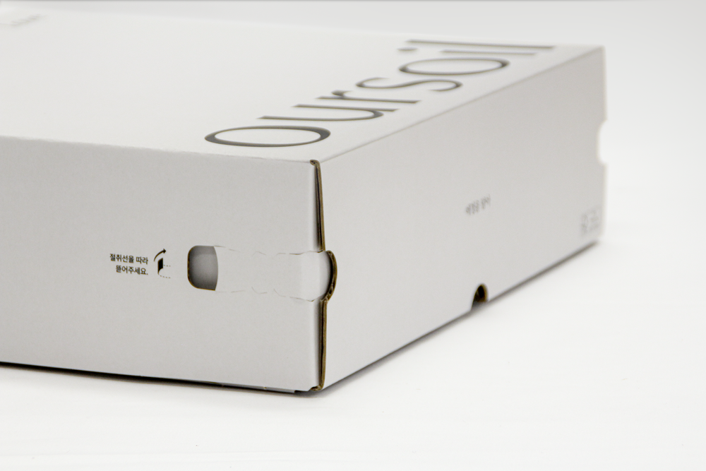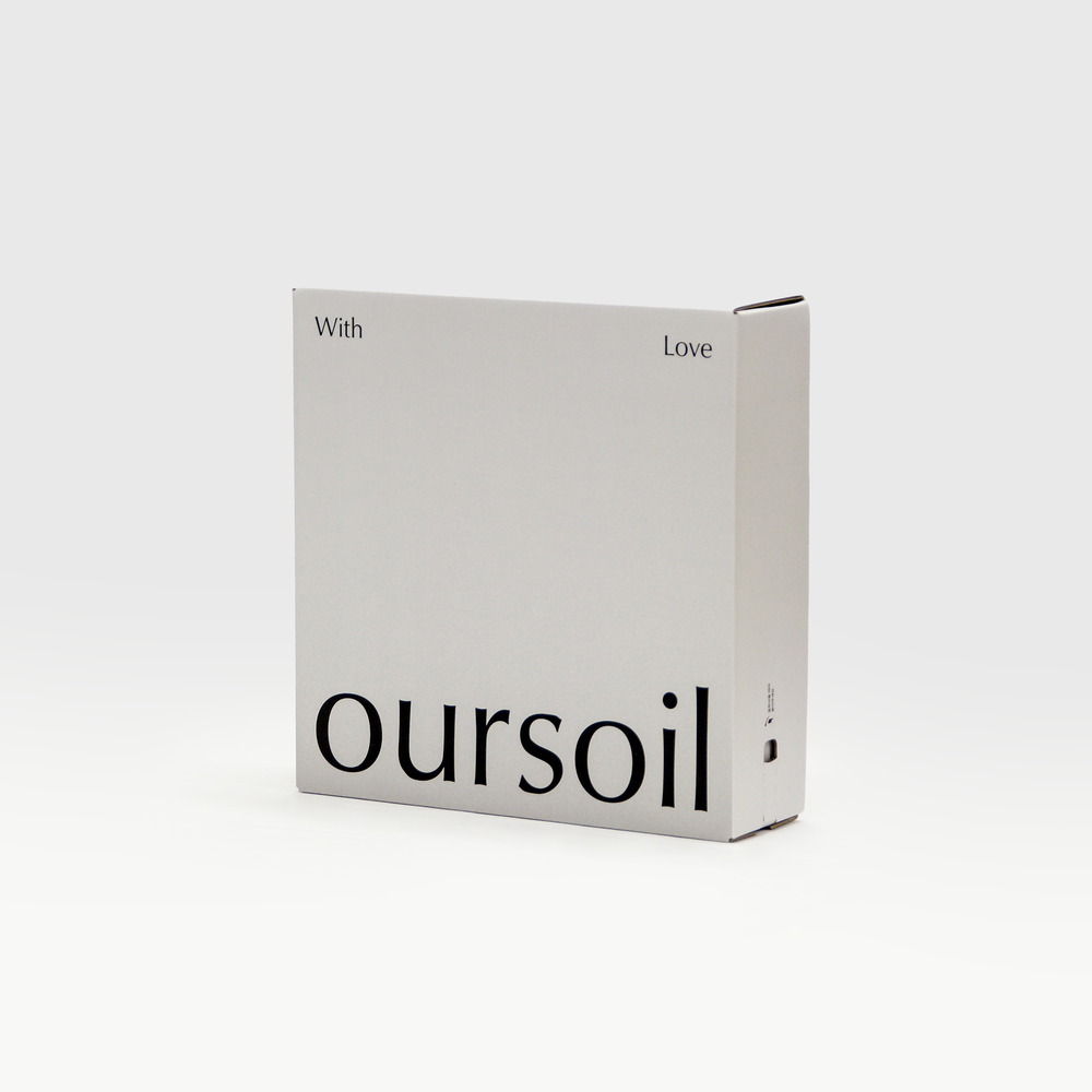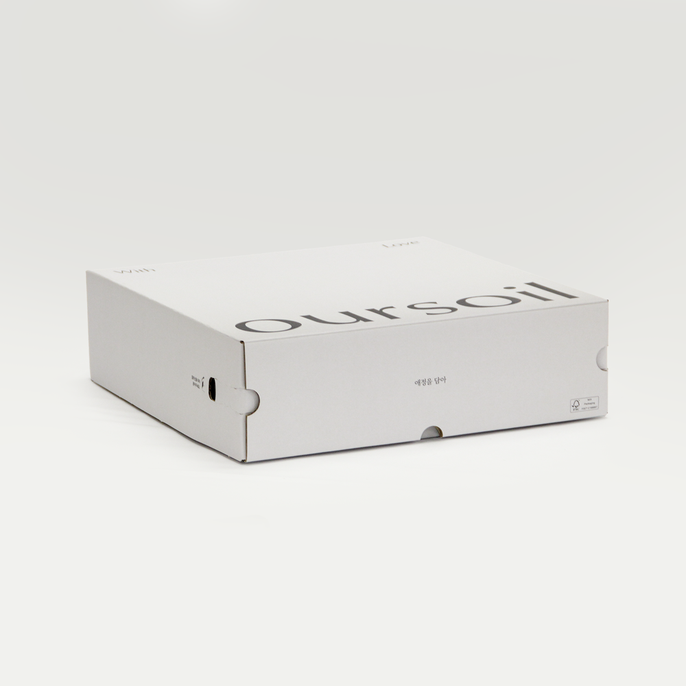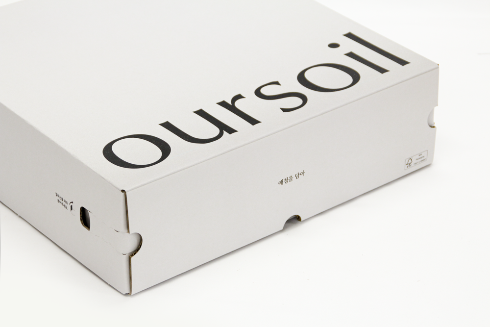 전면 하단에 oursoil 로고를 크게 배치해 브랜드 아이덴티티를 강조합니다.