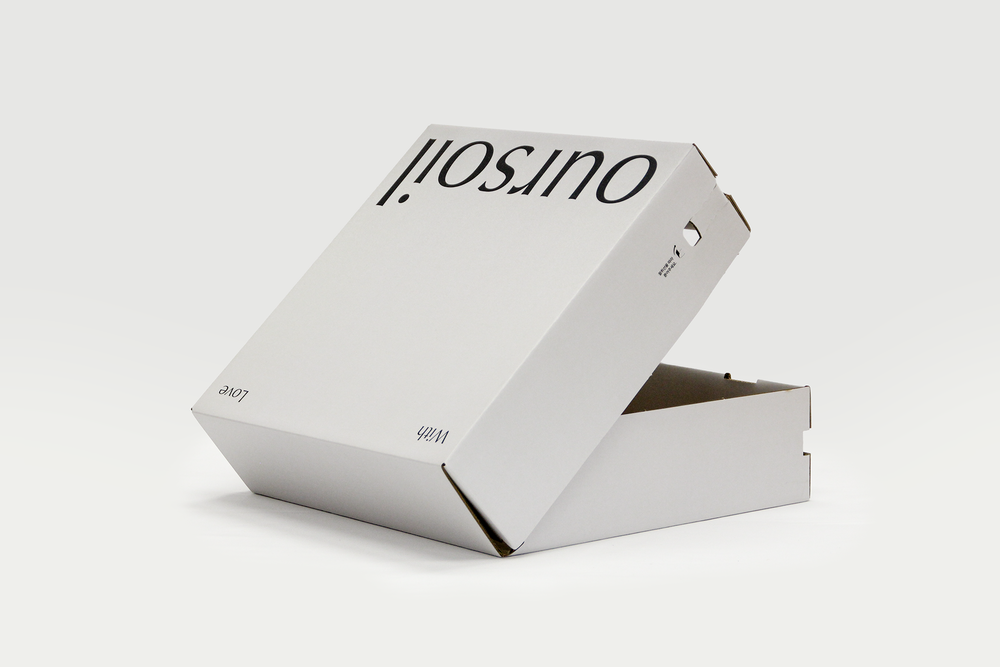 군더더기 없는 흰색 합지 박스와 선명한 타이포그래피만으로 브랜드 이미지를 전달하는 구조입니다.