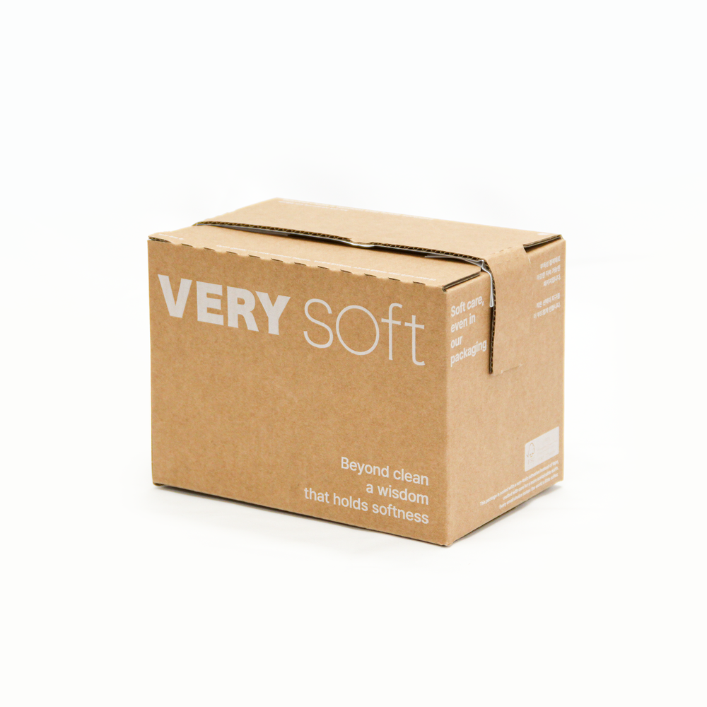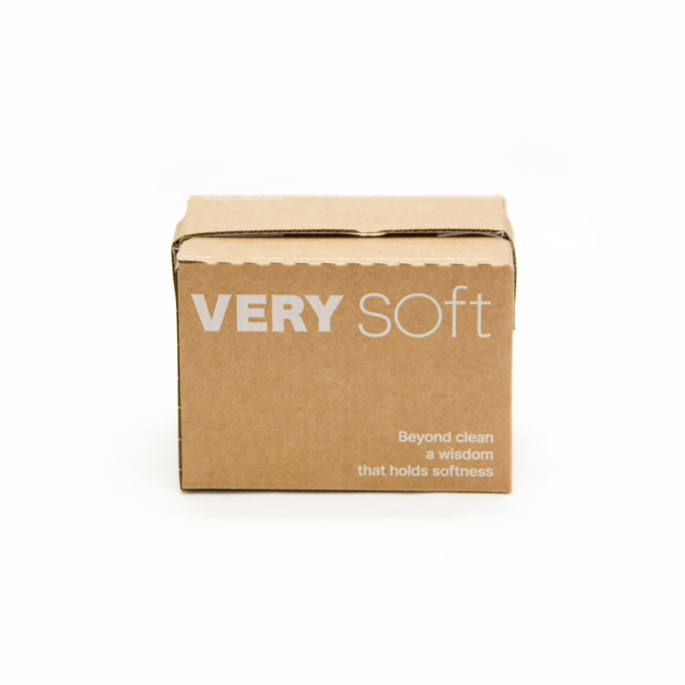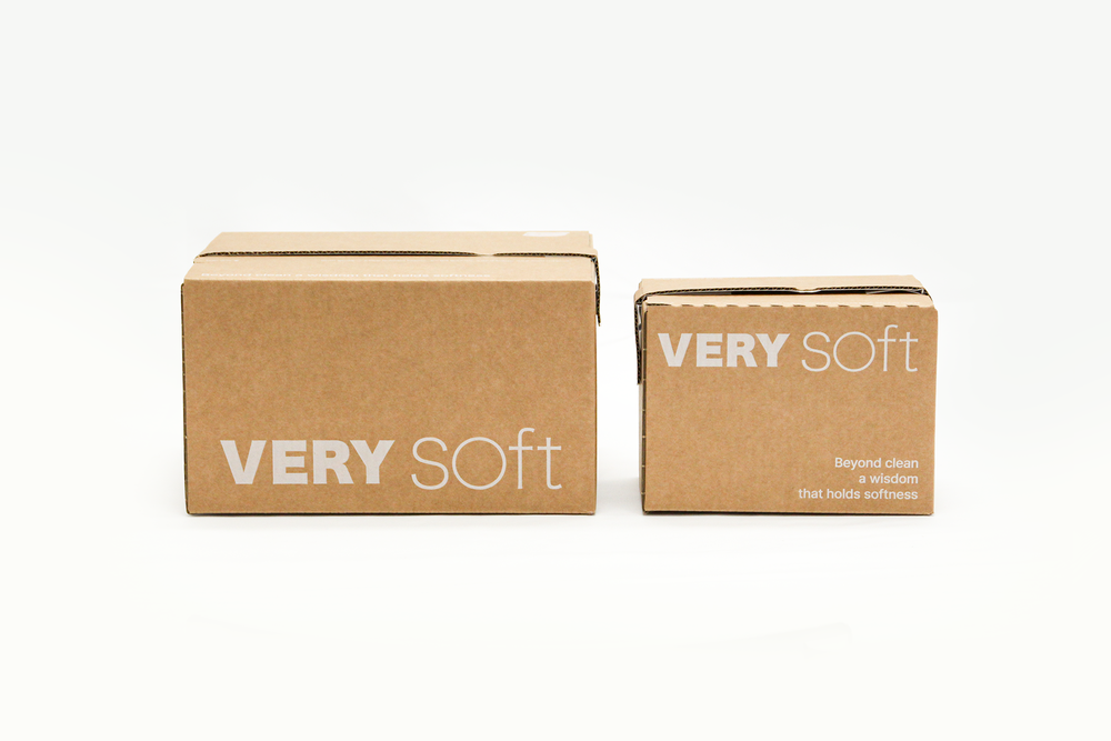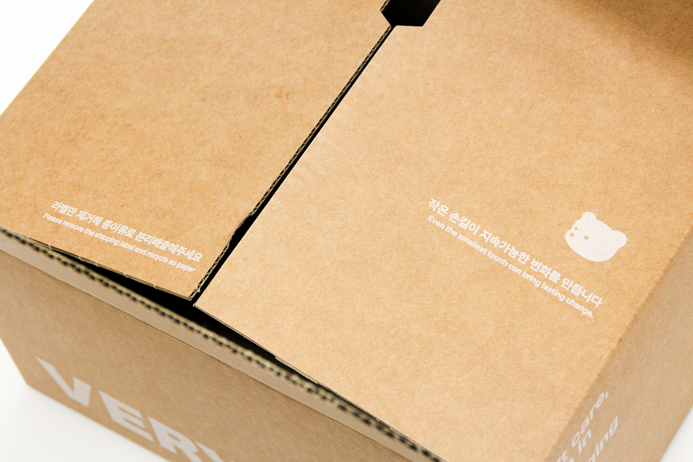 브랜드가 추구하는 깨끗함과 부드러움을 크라프트 재질과 화이트 1도 인쇄, 테이프리스 구조 안에 담았습니다.