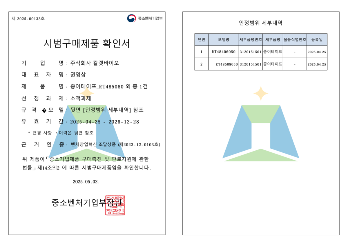 규격 승인 시 공공기관에서도 리펄프테이프 선택의 폭이 넓어지며
