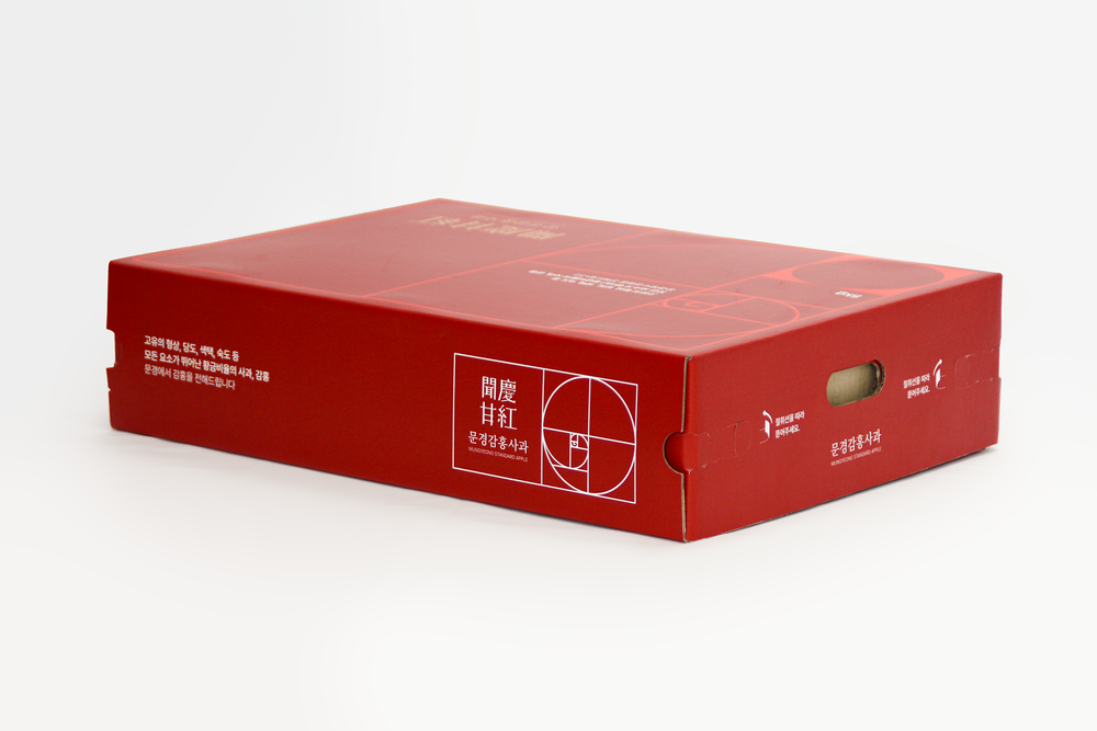 전면에는 문경감홍을 한자로 적용하여 브랜드 정체성을 강화했습니다.