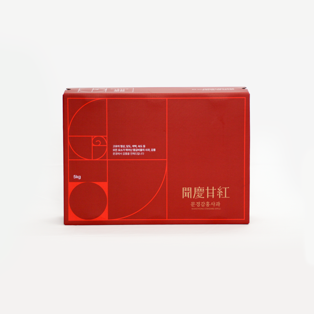 문경감홍사과 박스는 선물세트용 농산물 패키지로 제작된 상하 분리형 5KG 박스입니다.
