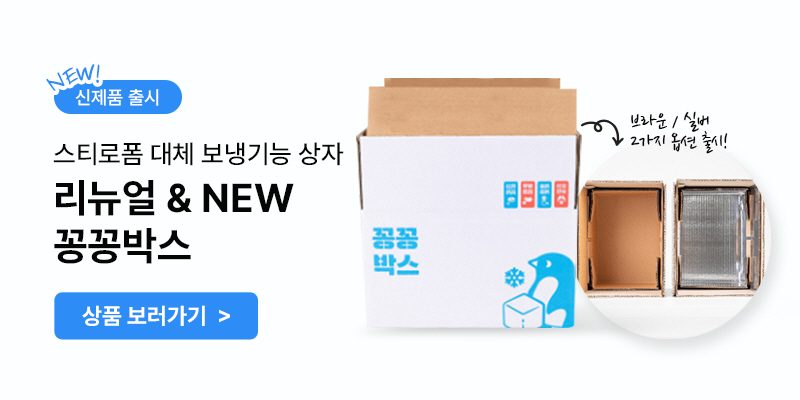 사이즈도 더욱 다양해지고, 이중구조 신제품으로 보냉력을 더욱 높였습니다. 꽁꽁박스는 특수 발수코팅으로 스티로폼을 대체하며 유해성분이 없고 적재효율이 뛰어납니다.