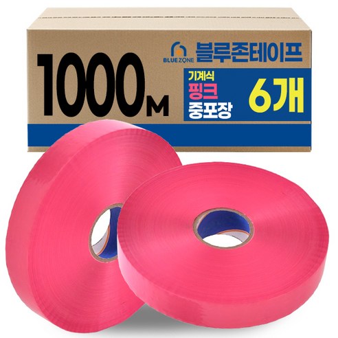 블루존 테이프 48mm x 1000M 기계용 중포장용 6개 핑크